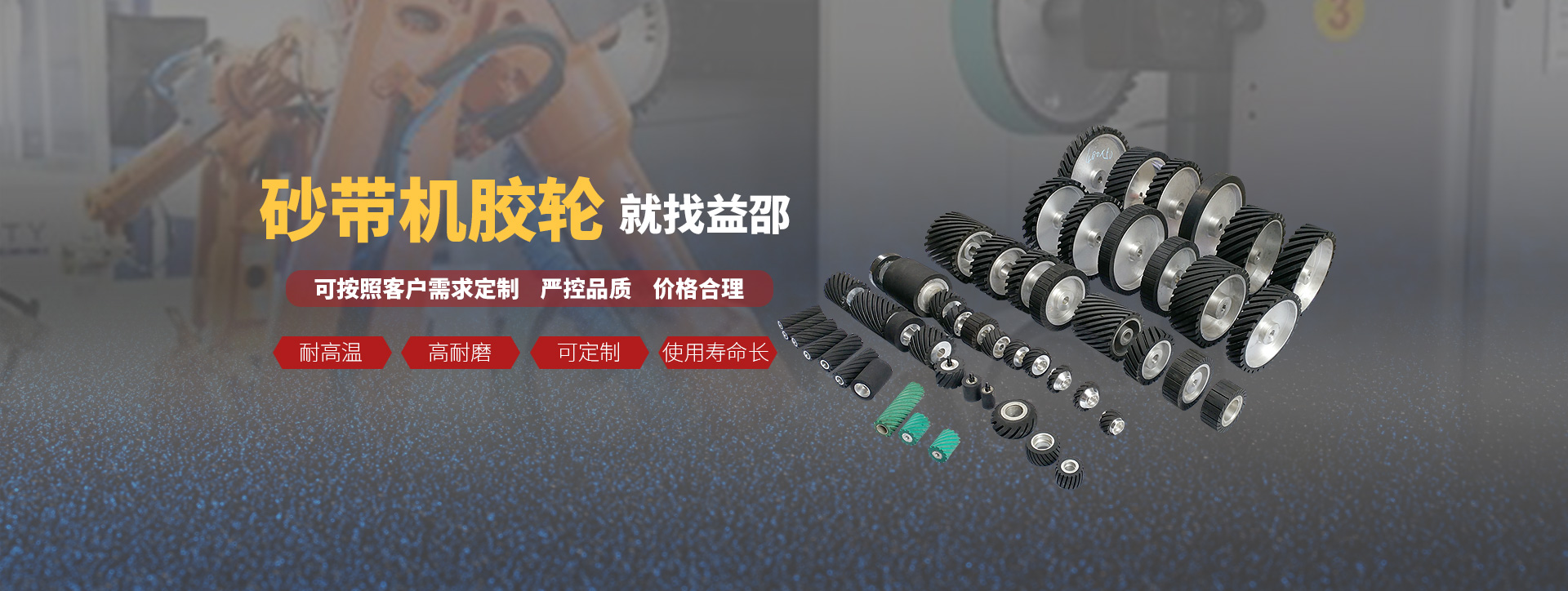 多年來,我國的砂帶磨削行業飛速發展,以往普通的砂帶機橡膠輪已經無法滿足眾多自動化設備的生產需求,應市場所需,益邵專業研發新產品,增添新設備,為配套客戶應用,反應快速,輔助出圖,以客戶產品,砂帶粒度,研磨要求,設備空間等出具不同方案,以利不同客戶各種設備之需,益邵與您一起共同探討,一起成長!
